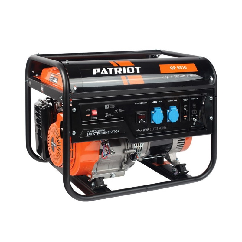 Бензиновый генератор PATRIOT GP 5510 предназначен прежде всего для строительных и ремонтных работ. Запас мощности двигателя относительно номинальной мощности электрогенератора обеспечивает устойчивость агрегата к жестким условиям эксплуатации. Простота компоновки делает генератор доступным по стоимости. Оснащен двигателем с верхним расположением клапанов [OHV], что значительно увеличивает ресурс, снижает выхлоп и уровень шума. Датчик контроля масла исключает запуск и работу генератора при отсутствии или низком уровне масла в картере. Синхронный электрогенератор с системой автоматической регулировки и медными обмотками обеспечивает стабильное выходное напряжение и частоту тока. Цифровой электронный мультидисплей позволяет контролировать все выходные характеристики: напряжение, частоту, а также счетчик моточасов помогает следить за интервалами между техническим обслуживанием. Выход 12 вольт позволяет подзарядить автомобильный аккумулятор в экстренном случае. Усиленная передняя панель с утопленными элементами управления снижает риск механических повреждений. Адаптирован под установку транспортировочного комплекта.