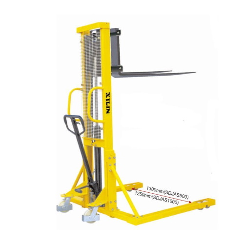 Штабелер ручной гидравлический XILIN SDJAS500 0,5 т 1,6 м - это ручной штабелёр с расширенными опорами. Благодаря подобной конструкции штабелёр имеет повышенную устойчивость, а вилы имеют возможность опускаться ниже, чем у стандартных моделей, и отличаются более низкой высотой подхвата в 70 мм.