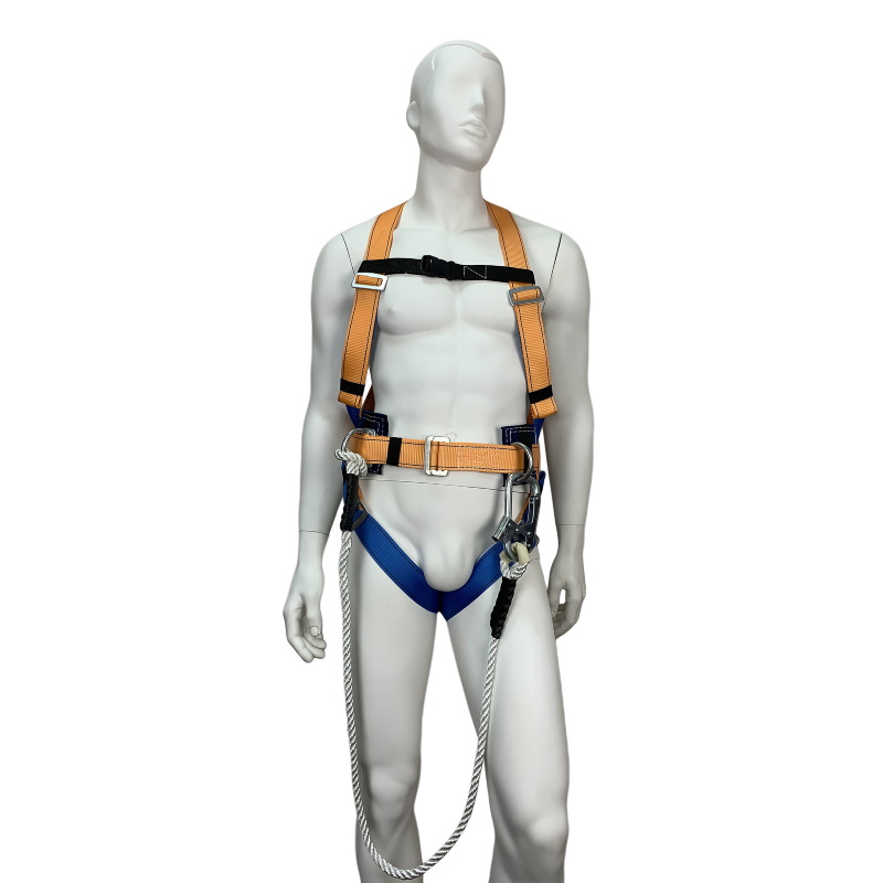 На привязи есть заднее D-кольцо для присоединения стропа из каната или ленты, длиной от 2 до 50 метров. Кольцо применяется для осуществления экстренной эвакуации из замкнутых пространств рабочих, спасательных работ. Данная удерживающая страховочная система представляет собой привязь, состоящую из набедренных и наплечных лямок, ремня с пряжкой, кушака, двух D-образных колец, со стропом из полиамидного каната с крепежной петлей и монтажным карабином. На всю продукцию прилагается паспорт качества и сертификат.