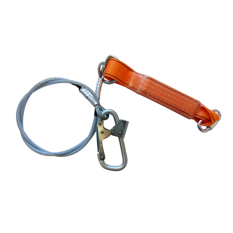 Страховочный строп, как отдельное страховочное средство, не может быть использовано, а только вместе со страховочной удерживающей привязью. Назначение стропа: для позиционирования, удержания от падения с высоты, безопасного перемещения и ограничения на высоте. Страховочный строп выполнен из металлического троса в ПВХ оболочке с амортизатором, монтажным и соединительным карабином.