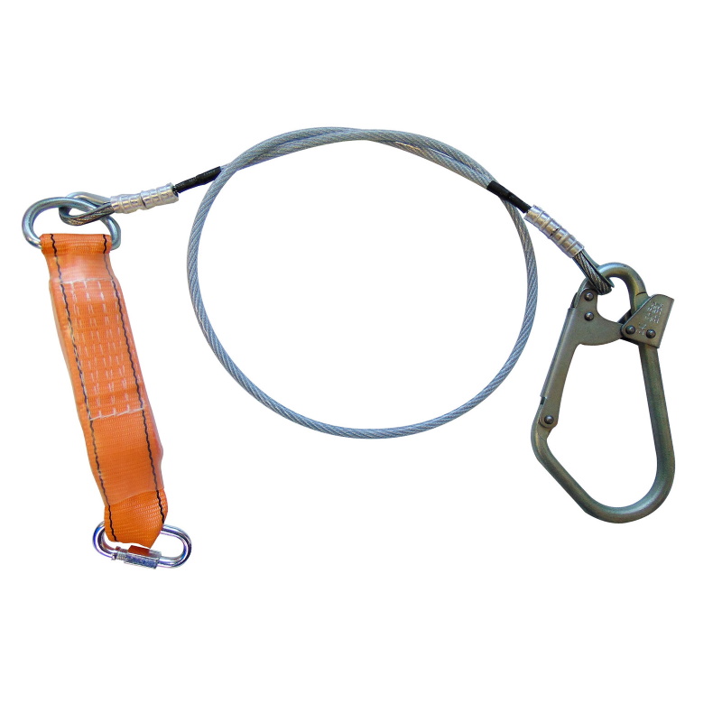 Строп страховочный аБ + Кс (трос, вариант 2) - фал из стального троса в ПВХ оплётке d-8 мм с амортизатором монтажным и соединительным карабином