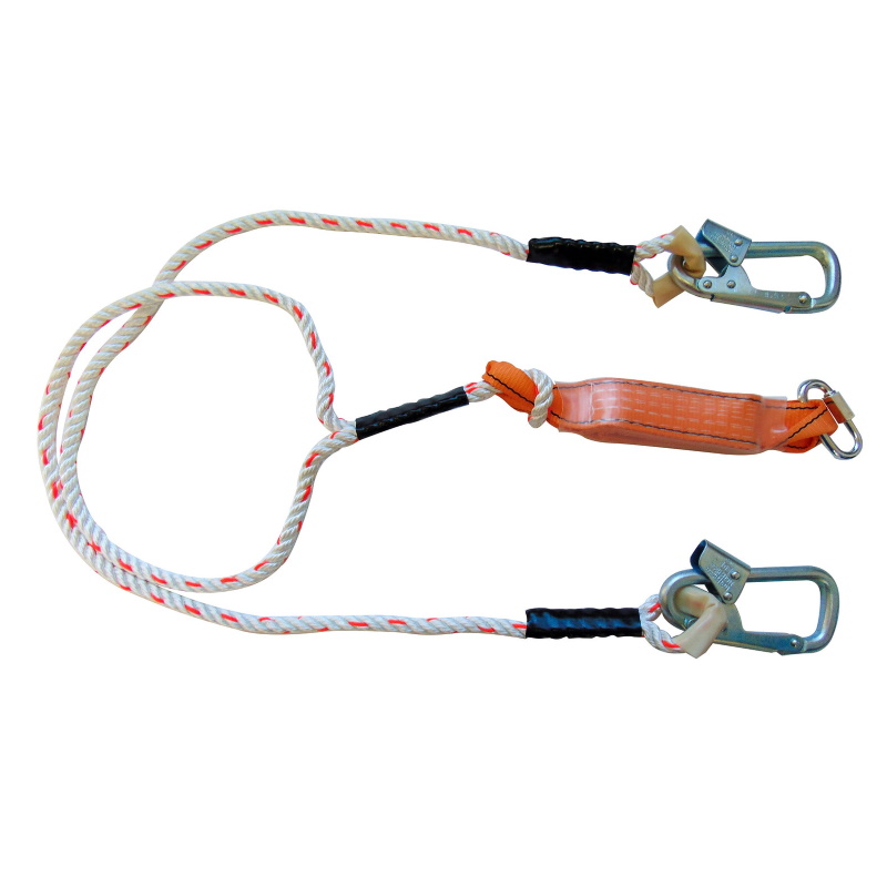 Строп страховочный аВд + Кс (канат) - страховочный строп, двуплечий фал из полиамидного каната с амортизатором, двумя монтажными и одним соединительным винтовым карабином.