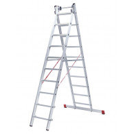 Лестница алюминиевая двухсекционная НОВАЯ ВЫСОТА NV 522 2х18 подходит для выполнения широкого спектра работ. Направляющие и ступени изготовлены из легированного рифленого алюминиевого профиля и имеют дополнительные ребра жесткости. Стальные кронштейны, скобы и зацепы обеспечивают плотный зажим выносной секции.