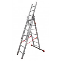 Лестница алюминиевая трёхсекционная НОВАЯ ВЫСОТА NV 3230 3х12 подходит для выполнения широкого спектра работ. Направляющие и ступени изготовлены из легированного рифленого алюминиевого профиля и имеют дополнительные ребра жесткости. Стальные кронштейны, скобы и зацепы обеспечивают плотный зажим выносной секции.